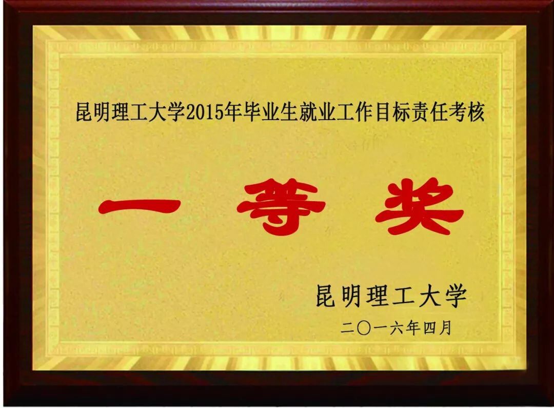 昆明理工大学2015年毕业生就业工作目标责任考核“一等奖”