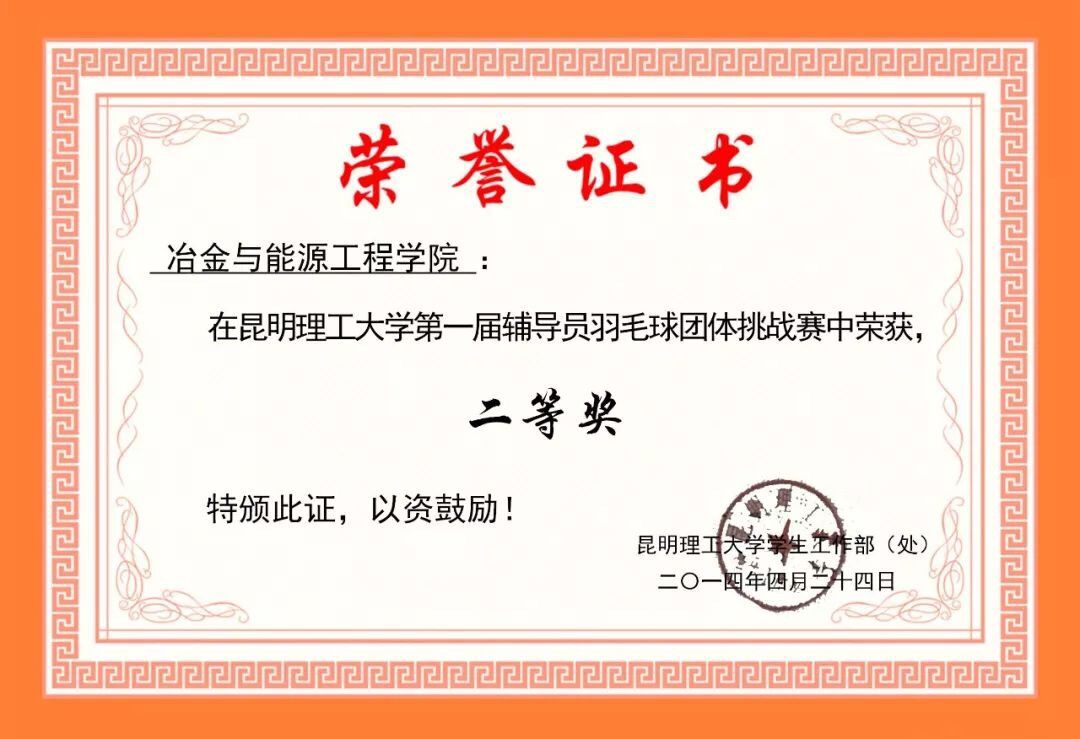 昆明理工大学第一届辅导员羽毛球团体挑战赛“二等奖”