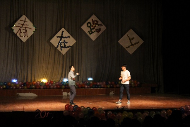 3、正当大家依然沉浸在音乐的气氛中时,一个自编自导的情景喜剧《爱之初体验》走向舞台。不得不佩服他们能够在短时间内完美地完成这个作品,并引得观众的阵阵笑声。