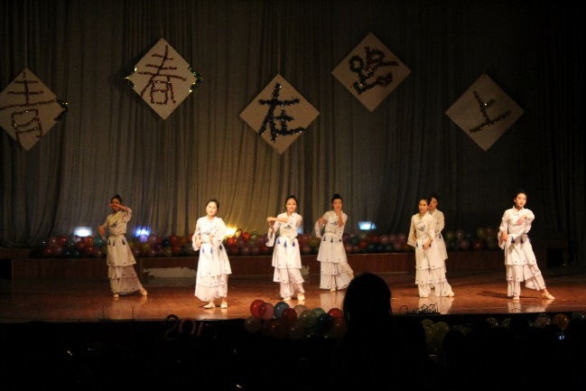 院的美女们带来的中国风舞蹈《落花情》,精美的服装,优美的舞姿,不禁让观众中的男同学们一个个都瞪大了眼睛。
