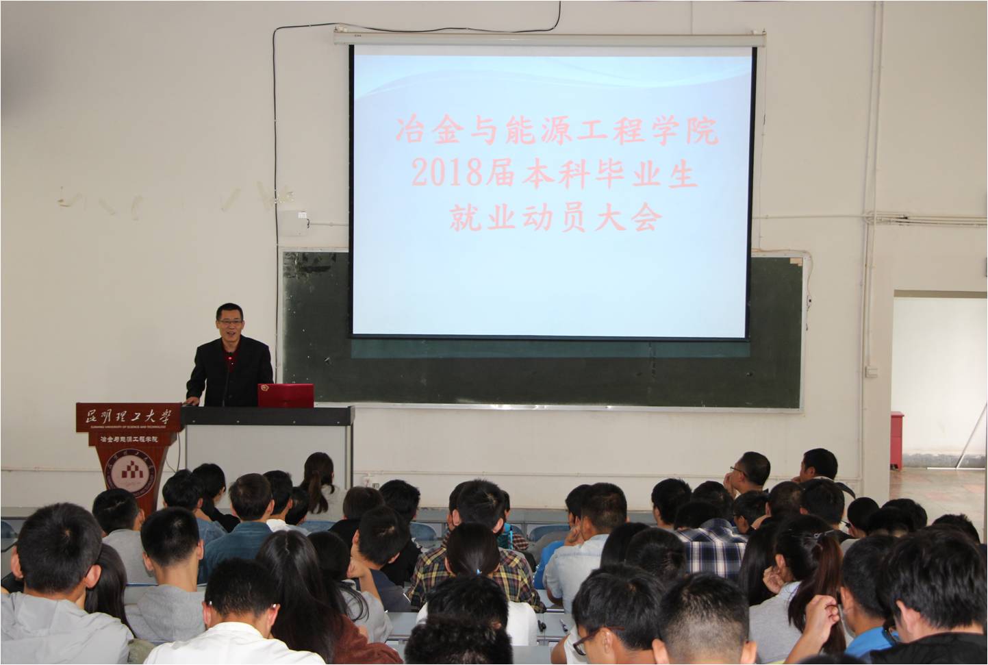 2018届本科毕业生就业动员大会在莲华校区基础楼200报告厅顺利召开,院党委陈杨健书记,新能源系、能动系、冶金系负责老师,学工办老师、毕业班专业导师以及澳门娱乐城