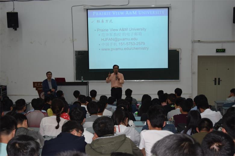 毕业季“启迪人生”系列讲座第二讲在莲华校区基础楼报告厅开讲,由美国德克萨斯州普雷维农工大学范华军教授为澳门娱乐城