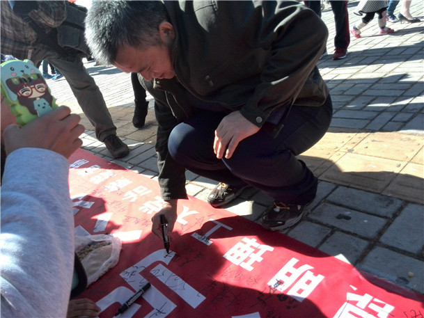 志愿者们于憬园集合出发,大约十点到达活动地点。准备完毕,志愿者们摆出“同在蓝天下,人鸟共家园”的横幅并对游客们进行宣传。游客们在宣传横幅上纷纷签名,以表达对本次活动的一种支持和期待。在活动现场,持续呈现了一股争先恐后的热潮。在场很多喂鸥的爱心人士,见到志愿者们的到来,都高兴地和他们互动并加入到爱鸥护鸥的团队中来!其中有天真可爱的小朋友,也有充满爱心的大学生,更有那些深爱着家乡一草一木的昆明老人!除此之外,志愿者还向游客们宣传红嘴鸥的食性,并组织青志协人员清理水岸上的纸屑、果皮为红嘴鸥打造一个良好的居住环境。活动于下午14点左右完满结束。