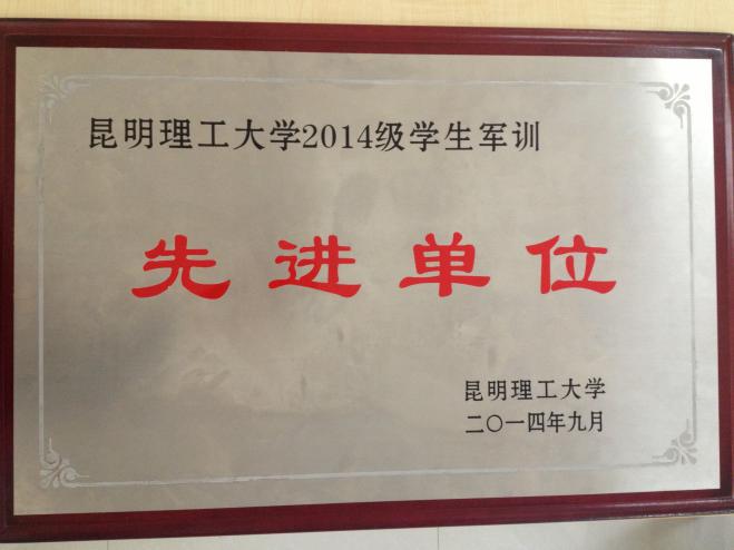 荣获“昆明理工大学2014级学生军训先进单位”荣誉称号,为此次军训工作画上圆满句号。