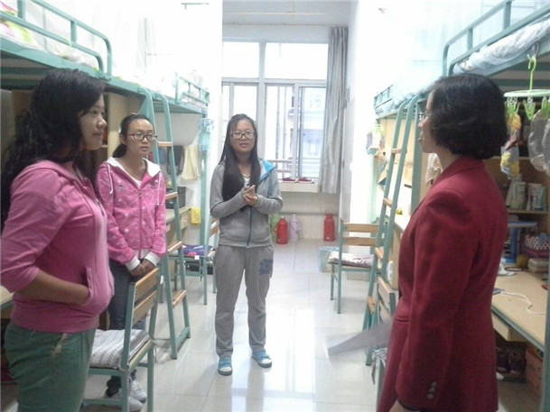 寝室里欢声笑语,洋溢着师生间的融融情谊。樊书记一行与同学们闲话家常,面带平和的微笑,此刻的他们是和蔼的师长,更是亲切的家人。他们在与同学们的交谈中详细询问了同学们在开学一个月来的生活和学习情况,认真听取同学们反映的一些问题,并鼓励同学们再接再厉,把更多的时间投入到学习和体育锻炼中去,力争做一名全面发展的大学生。一声声问候,一句句叮嘱,学院领导的关心和问候对于同学们来说是惊喜,但更多的是温暖。