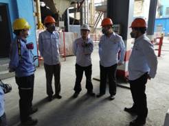 在滇中有色公司党委副书记、副总经理刘大方的陪同下,先后来到熔炼分厂艾萨炉主控室、艾萨炉操作平台、转炉吹炼工段、阳极炉精炼工段、硫酸分厂主控室进行参观和交流,了解滇中公司的生产工艺及生产情况。