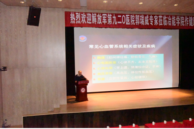 在伍集成会堂二楼报告厅举行了“常见心血管系统相关症状及疾病的防治”的健康知识讲座,解放军第九二〇医院郭瑞威副院长任了此次讲座的主讲人。