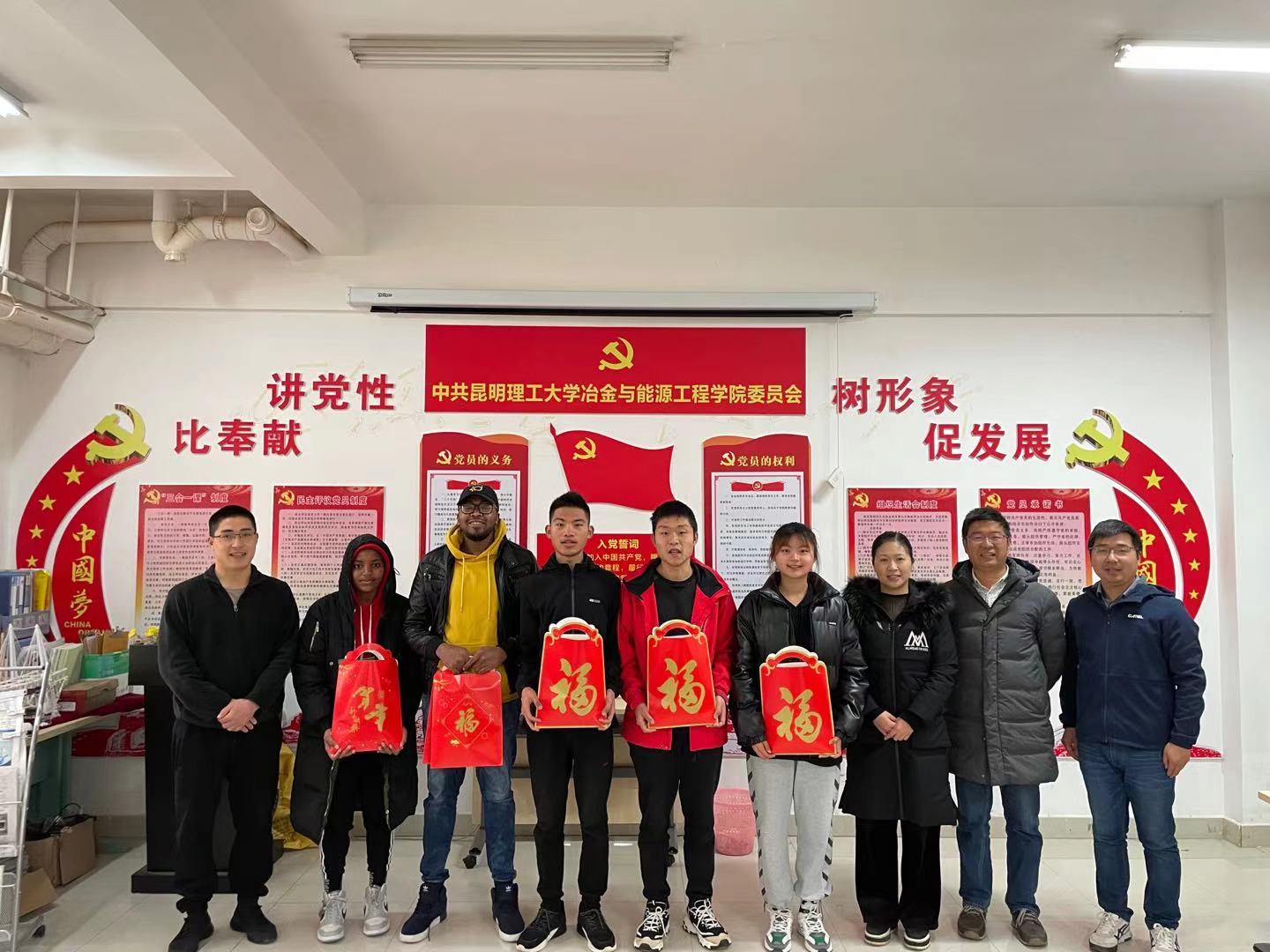 分别在莲华、呈贡校区开展2021年寒假留校学生慰问活动,向因家乡疫情或开展科研选择留校的24名研究生、7名本科生表达新春慰问。院党委书记董绍伦,党委副书记令狐欢欢,副院长谢克强,省部共建复杂有色金属资源清洁利用国家重点实验室副主任田国才出席座谈会。学工办主任于志强,班主任阴树标、何亚鹏及6名辅导员参加慰问活动。