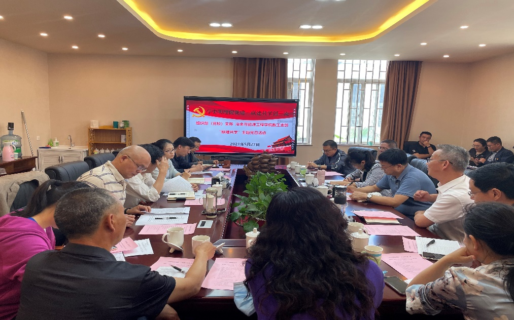 第一阶段,董绍伦书记介绍本次“联建工学”主题党日活动以“支部共建、党员互学、成果共享、共同提高”为目的,建立健全党建活动联建联创机制,激发干部党员将党史学习教育“学党史、悟思想、办实事、开新局”的各项要求与实际工作紧密结合,真正把党史学习教育的政治优势转化为推进学院、部门高质量发展、学校“双一流”建设的强大精神动力。