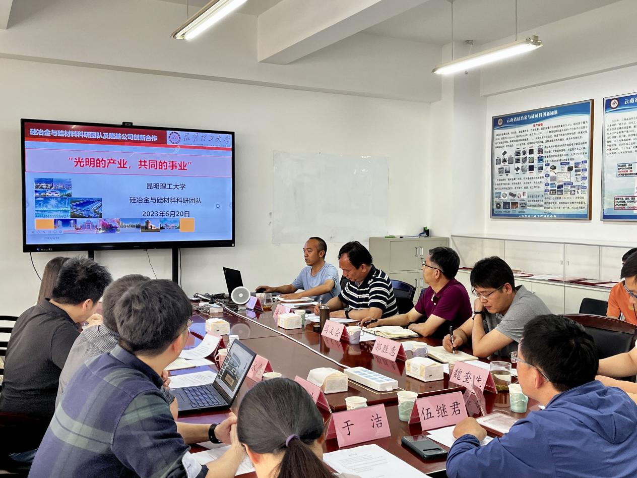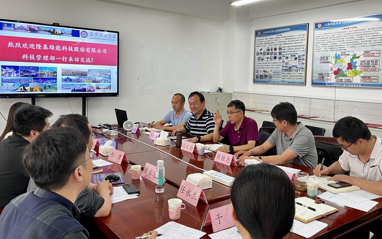 6月20日下午,隆基绿能科技股份有限公司科技管理部张肃总监一行来访昆明理工大学,进行了光伏产业科研平台建设和联合申报项目情况的调研,并进行了座谈交流。与会人员包括云南省硅工业工程研究中心主任马文会教授(普洱学院党委副书记、院长)、科学技术院院长李祖来教授、澳门娱乐城