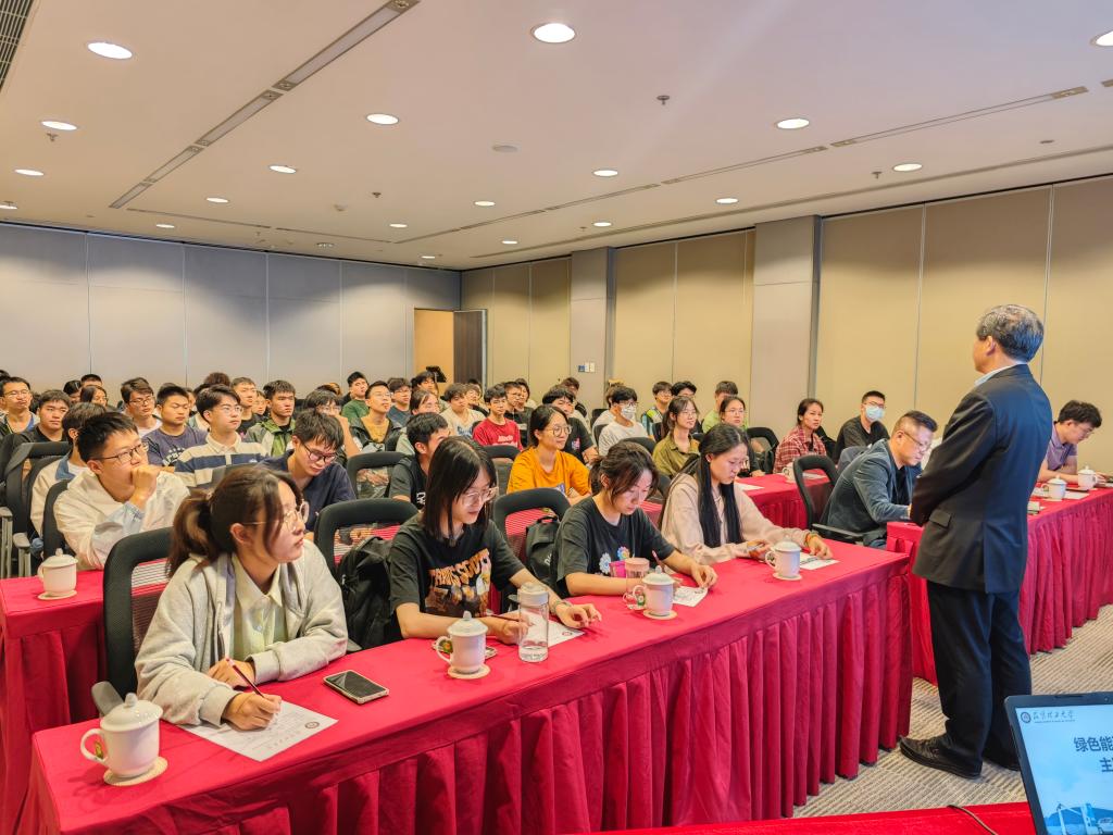 会上,王华教授首先向参会学生及教职工讲述了学院历届优秀本科生先进事例,鼓励学生始终保持求知求索之心,自觉践行终身学习理念,在不断追求学术造诣的同时努力提升自我综合素质。争做党和国家能源事业的合格建设者,为绿色可持续发展贡献自身力量。