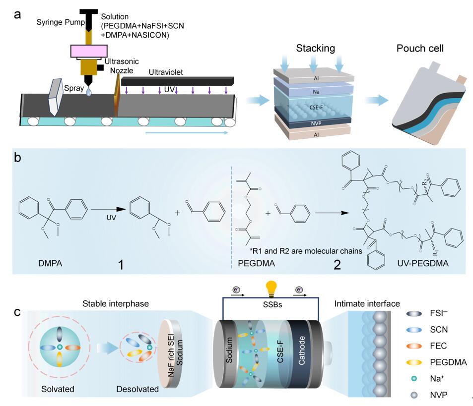 图1. 固态钠金属电池的制备过程和实现稳定循环的机理示意图。