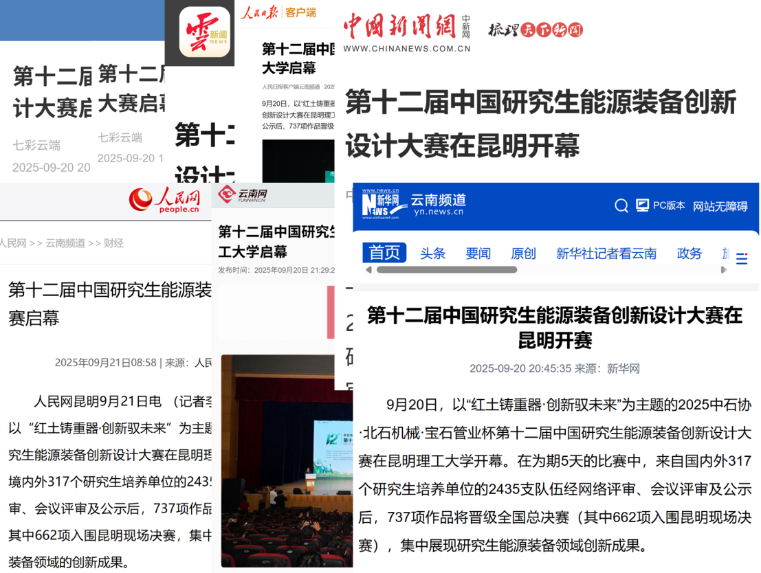 通过开闭幕式的视频直播及赛事全程的图片直播,本届大赛同样引发了广泛反响。云南广播电视台对活动进行了专访报道,新华网、人民日报、人民网、云南网等多家主流媒体纷纷聚焦赛事盛况,从不同角度展现了大赛的精彩瞬间与创新亮点。这些权威媒体的深入报道,不仅扩大了赛事的社会影响力,也进一步彰显了赛事在推动能源装备创新、服务国家战略和培育青年人才方面的重要价值。